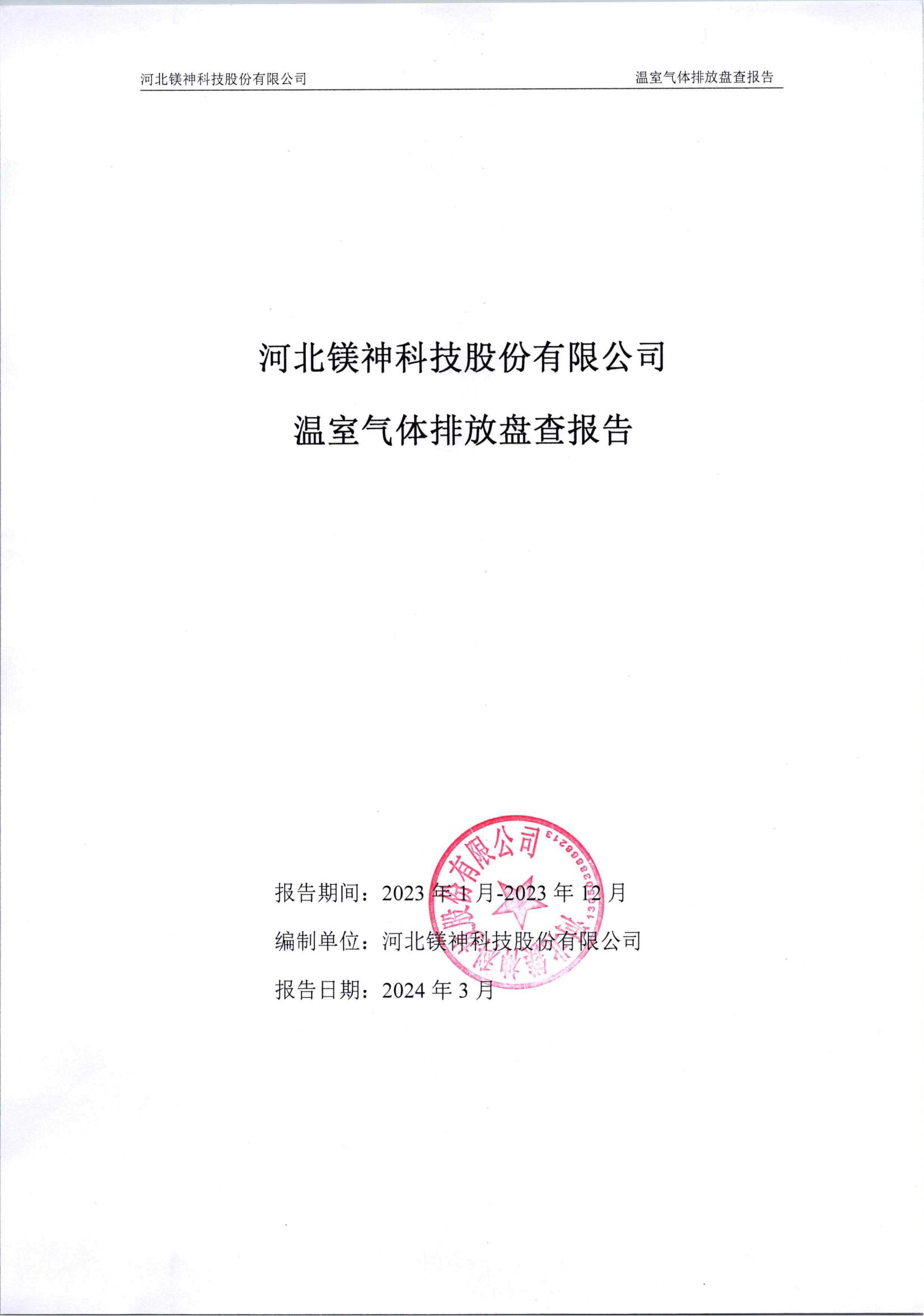 河北鎂神科技股份有限公司2023年度溫室氣體排放盤查報告