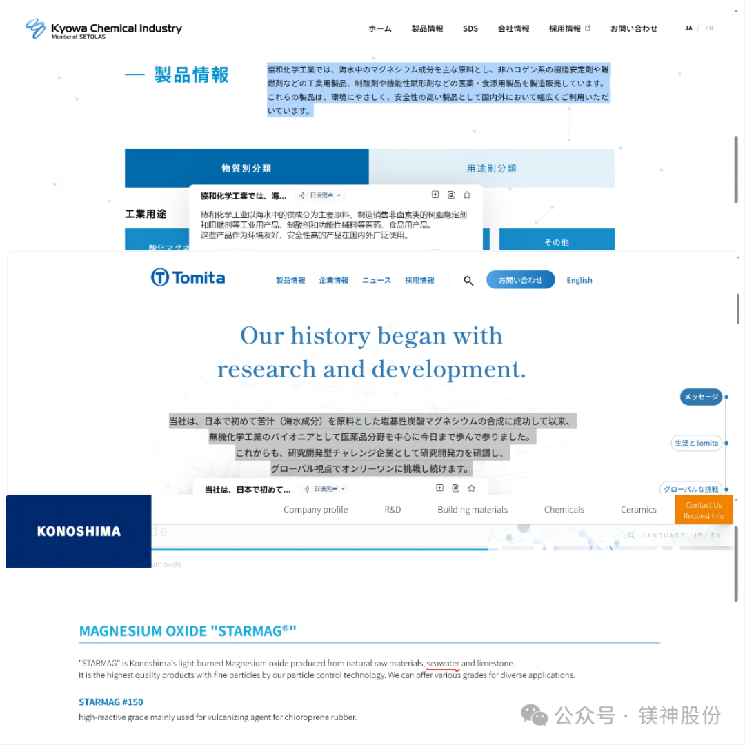 圖為相關(guān)日本公司官網(wǎng)將海水法制鎂鹽作為宣傳